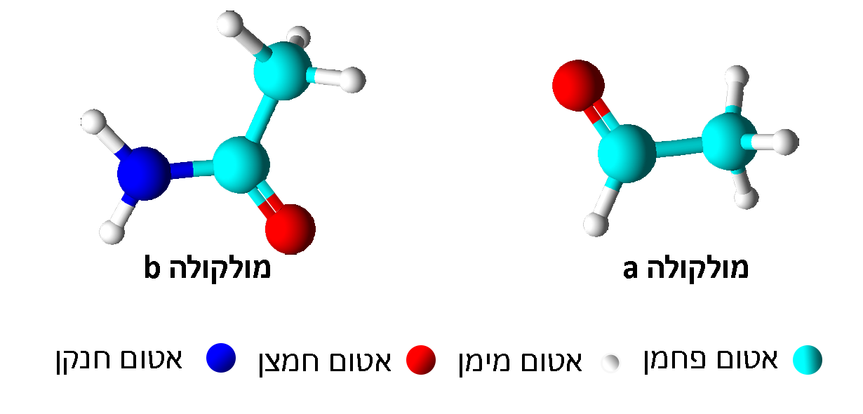 4. המודלים שלפניכם מייצגים את נוסחאות המבנה של שתי מולקולות המסומנות באופן שרירותי a ו- b.