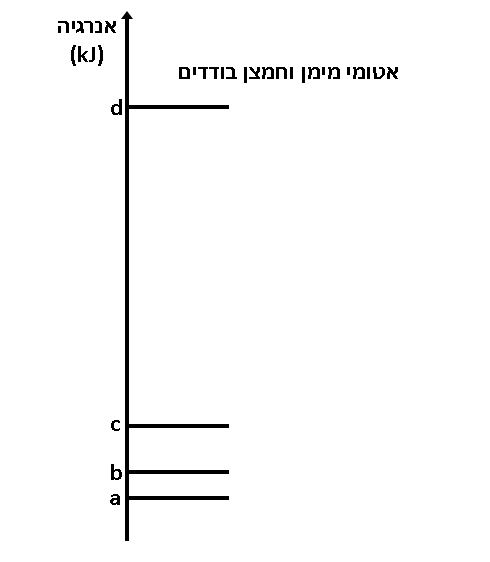 1. בתגובה בין היסוד שסומן באות a ובין היסוד שסומן באות b מתקבל תוצר יחיד שהוא מוצק בטמפרטורת החדר.